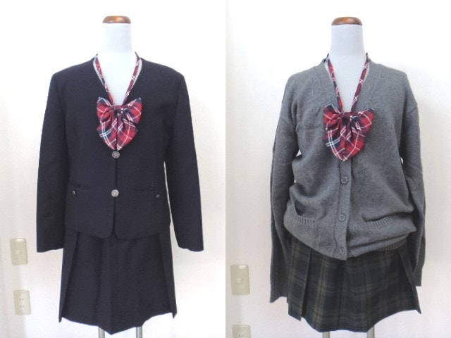 P72 共立女子第二高校▼女子高生 制服 学生服 紺ブレザー▼スカート▼リボン▼カーデガン/5yt256